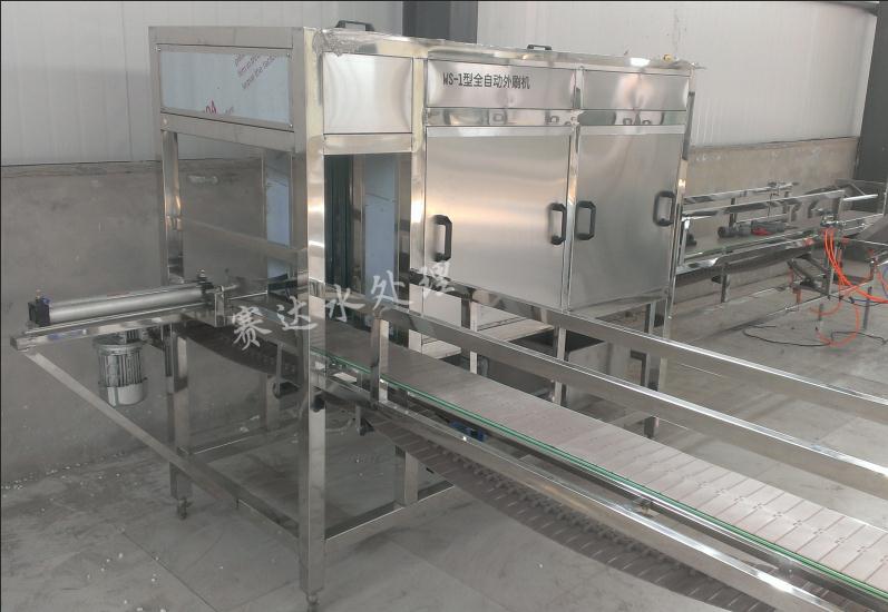 該外刷機時具有自動測桶、進桶、洗桶、噴淋、出桶于一體的新型外刷機,具有刷洗速度快、刷洗潔凈程度高、結構緊湊、操作簡單、維護方便等特點。是集機電、氣于一體的新型外刷機。